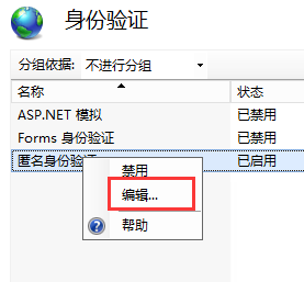 2、在匿名身份验证上点右键菜单,然后点编辑
